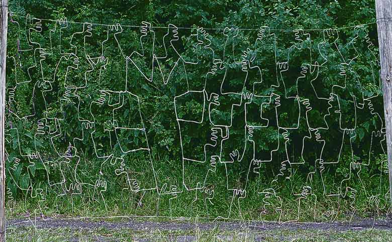 Draht, Pfosten; 130 cm x 600 cm; Skulpturenweg, Buchet