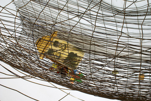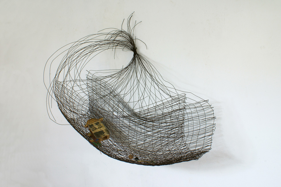 Draht, kleine Gegenstände; 120 cm x 140 cm x 60 cm